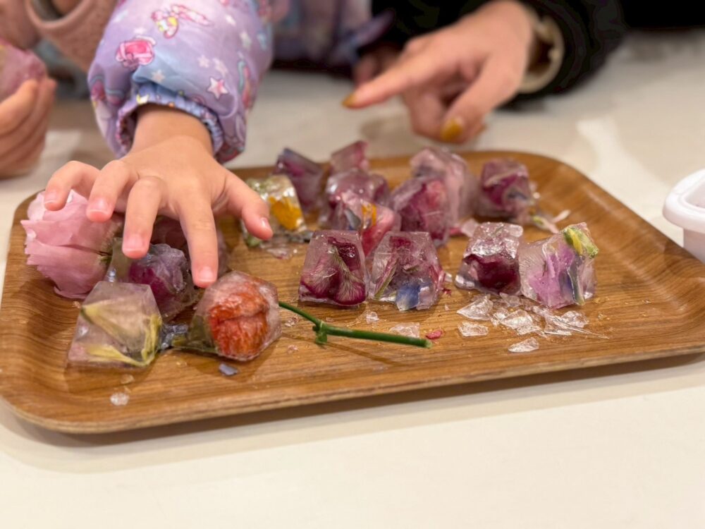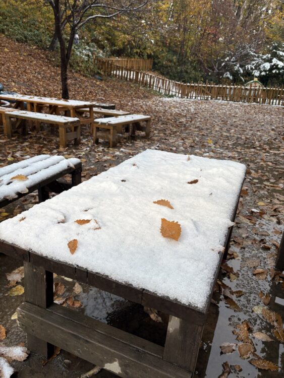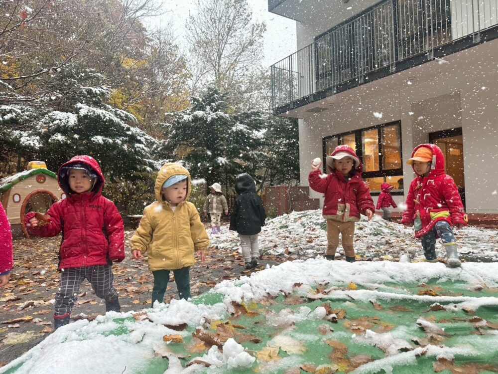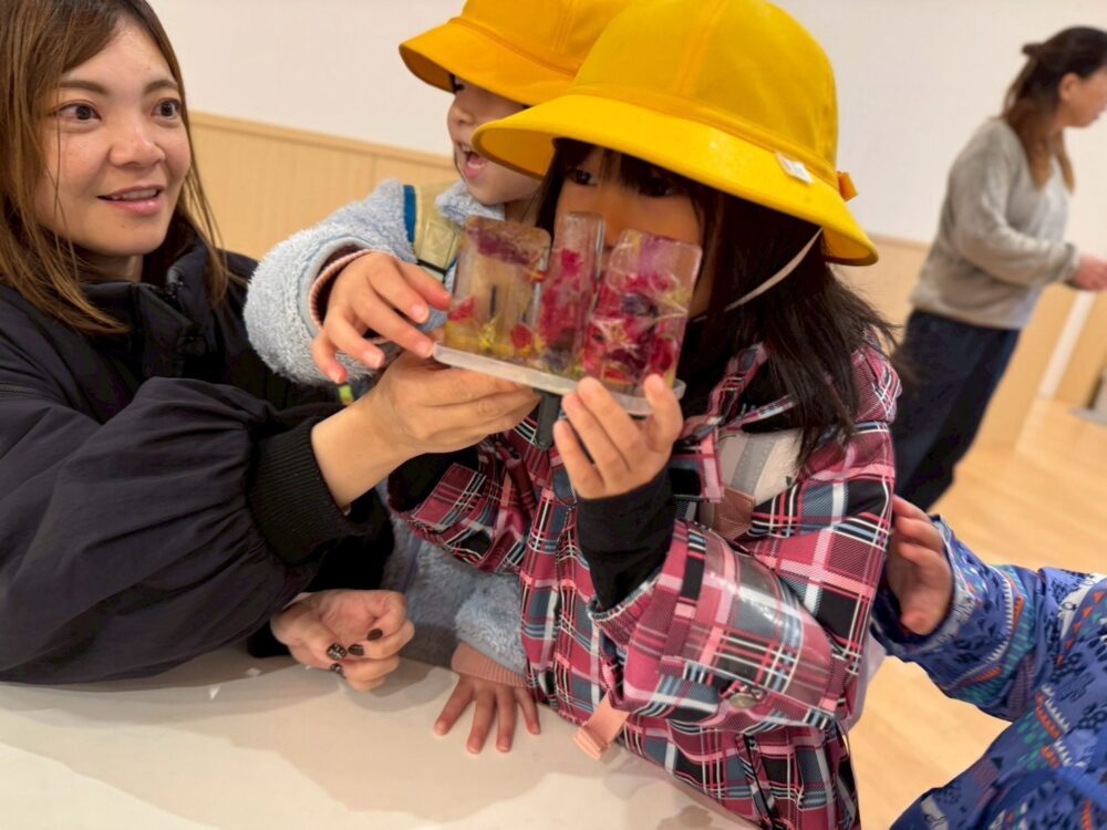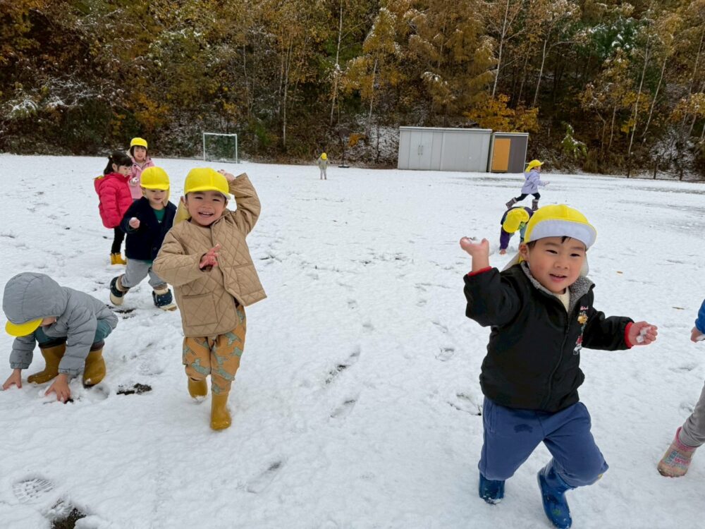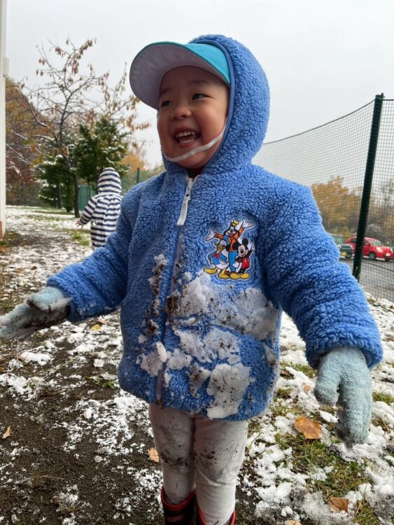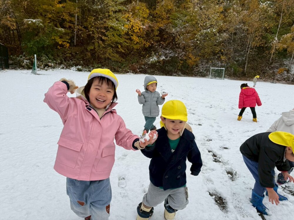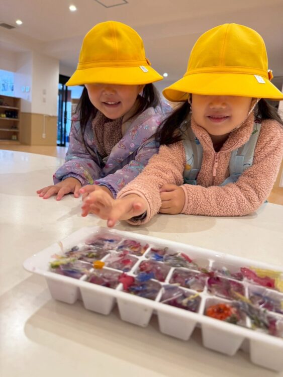 10月28日 昨日の光景! そして今日の光景… 昨日の穏やかなお天気とは打って変わって冷え込みましたね(^◇^;) そんな中、昨日「花育」で凍らせた 氷は…? うわぁ〜!とっても綺麗に凍っていましたよ\(^-^)/ こんなに素敵ならぜひまた挑戦したいですね♡ 森の落ち葉もどっさり!!寒さの中鳥も元気飛び交っています 発表会の合間に…外に飛び出した 子どもたちです 背中を丸めてるのは大人だけ… 子どもたちには沢山元気をもらいます \(^-^)/ 10月27日 11月7日