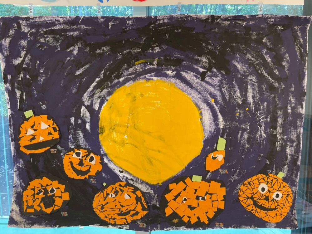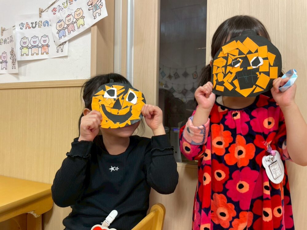 玄関には恒例のかぼちゃかお出迎えしています♡
