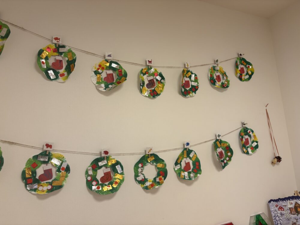 12月12日 本格的に雪が積もりましたね 雪まみれになって元気に遊ぶ子どもたちです(*˘︶˘*).。.:*♡ 園の中、どこに行っても子どもたちの可愛い飾りがあり、あったかい気持ちになります 可愛いなぁ♡心がほっこり 玄関にある個性的なサンタさんは りすっこクラブさんの作品(๑◔‿◔๑) 同じ顔にならないように、あえて見本を作らず…。 思うがままの個性的なサンタさんが誕生したそうですよ♡ びっくりサンタさん?笑 可愛いですね♡ 来週も子どもたちの笑顔を楽しみにしています(^^)/~~~ 12月10日 12月15日