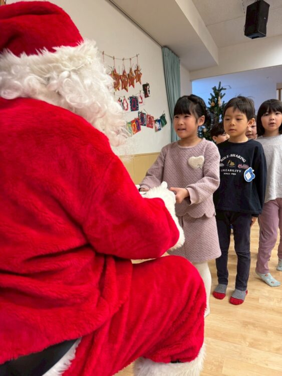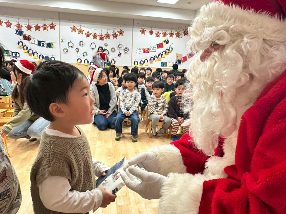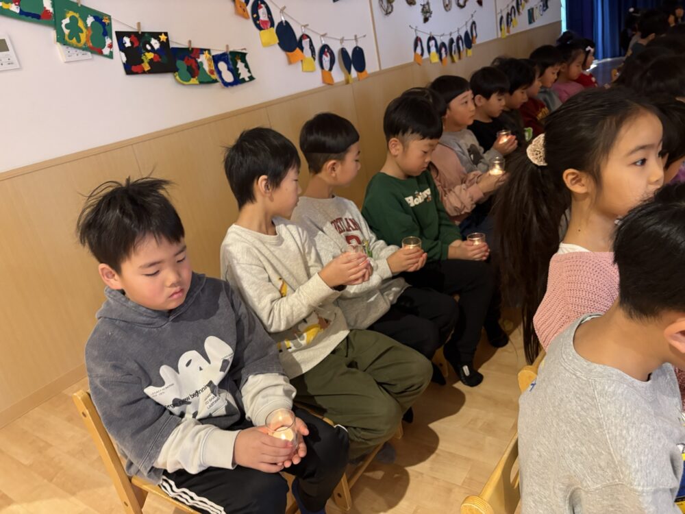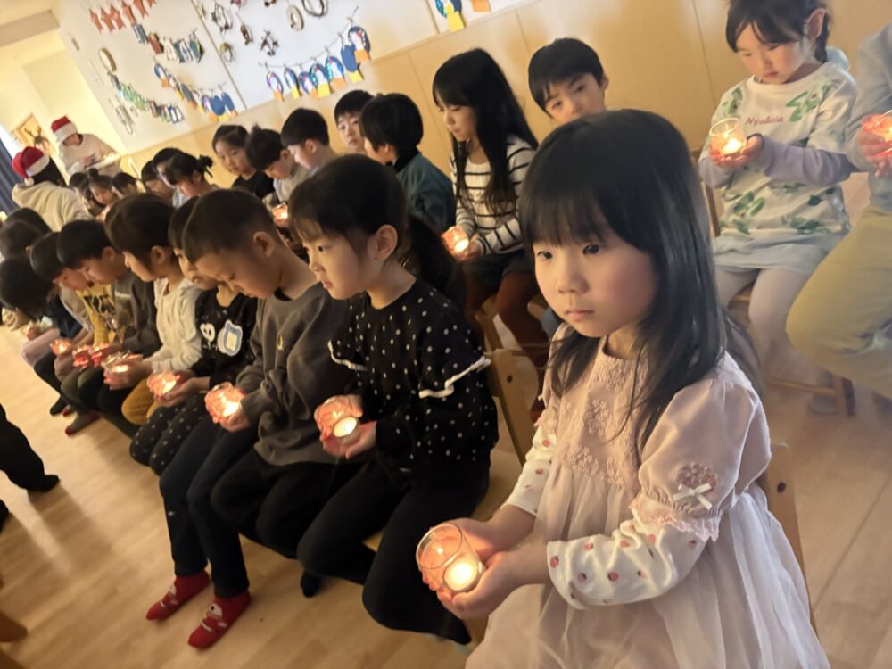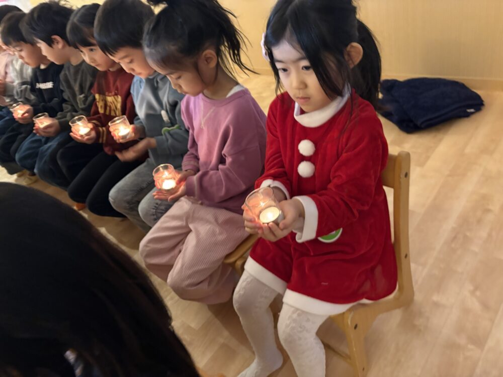 12月17日 今日は待ちに待ったクリスマス会♡ サンタさんを迎える準備はオッケーです!  先生たちによる楽しい劇! 役者揃い(*˘︶˘*).。.:*♡で子どもたちは大喜び! そして…厳かに…キャンドルの灯りを見つめる子どもたち みんなの願いが叶いますように…✴︎ Merry Xmas✴︎ みんなのところにサンタさんがやってきましたよ\(^^)/ サンタさんにプレゼントをもらいました 子どもたちの笑顔♡幸せな気持ちになります とってもご機嫌なサンタさん! また来年も来てくれたら嬉しいです (^^)/~~ 12月15日 12月26日