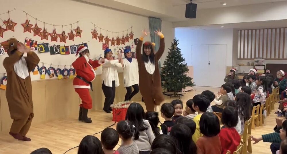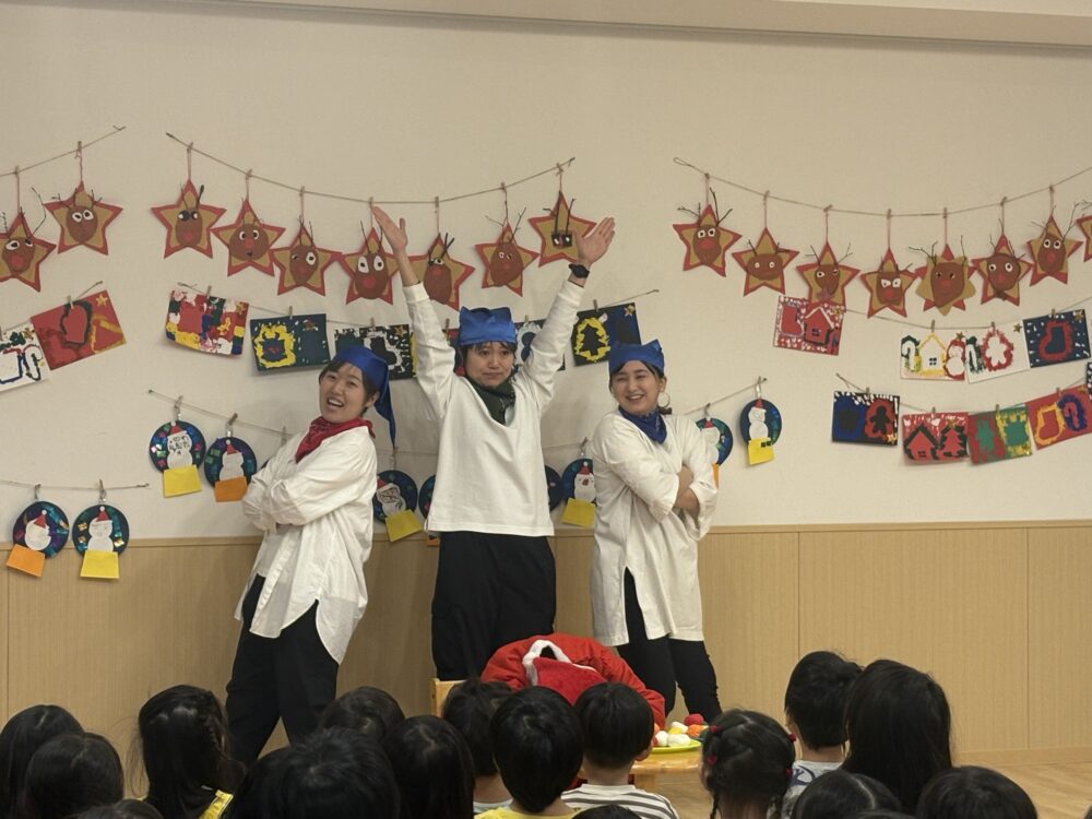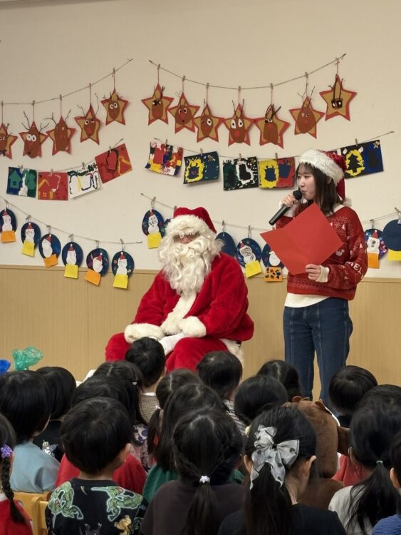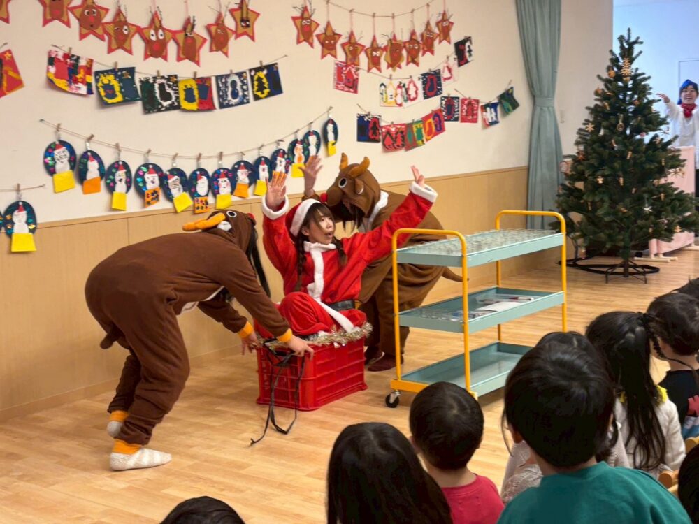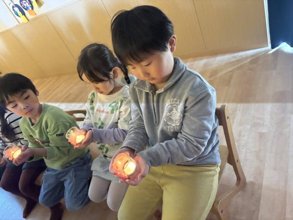 12月17日 今日は待ちに待ったクリスマス会♡ サンタさんを迎える準備はオッケーです!  先生たちによる楽しい劇! 役者揃い(*˘︶˘*).。.:*♡で子どもたちは大喜び! そして…厳かに…キャンドルの灯りを見つめる子どもたち みんなの願いが叶いますように…✴︎ Merry Xmas✴︎ みんなのところにサンタさんがやってきましたよ\(^^)/ サンタさんにプレゼントをもらいました 子どもたちの笑顔♡幸せな気持ちになります とってもご機嫌なサンタさん! また来年も来てくれたら嬉しいです (^^)/~~ 12月15日 12月26日